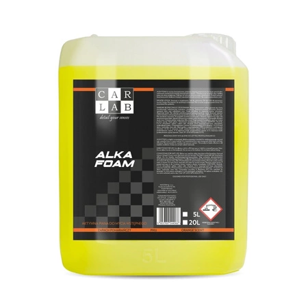 CARLAB ALKA FOAM to wysoce skoncentrowana, alkaliczna piana aktywna przeznaczony mycia samochodów osobowych i dostawczych metodą pianową bądź w formie oprysku. Charakteryzuje się bardzo silną i stabilną pianą oraz dużą siłą czyszczącą w każdych warunkach atmosferycznych. Zalecana jest do mycia wstępnego mającego na celu przygotowanie auta do bezpiecznego mycia kontaktowego przy użyciu szamponu samochodowego.