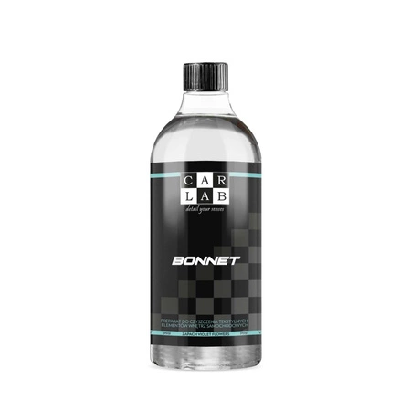 CARLAB BONNET to gotowy do użycia preparat przeznaczony do czyszczenia podsufitki oraz wszelkich tekstylnych elementów wnętrza samochodu. Niezwykle skuteczny i bezpieczny preparat usuwa nawet najtrwalsze zabrudzenia, nie wymaga przy tym wymywania a pracę z CARLAB BONNET uprzyjemnia świeży zapach. Plamy, kurz i inne zabrudzenia psują estetykę wnętrza Twojego samochodu? Mamy na to rozwiązanie! CARLAB BONNET przywróci świeżość i czystość tekstylnym elementom Twojego auta.