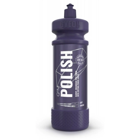 "Q²M Polish to skuteczna pasta polerska, zaprojektowana aby pozostawić powierzchnię wolną od hologramów i z głębokim połyskiem. Ma średnią siłę cięcia, co sprawia, że jest idealna do jednoetapowych korekt.
